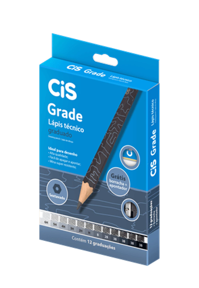 Kit de lápis técnico graduado cis c/12 lápis grátis borracha + apontador