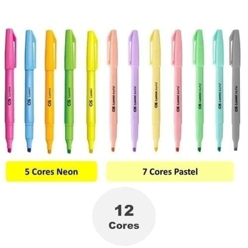 Marca texto cis lumini kit c/12 unidades c/ 5 neon e c/7 pastel